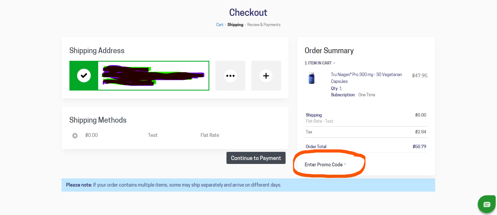 If you are using a mobile device & cannot locate the "Enter Promo Code" option, then you will have to rotate your screen to Landscape Mode (horizontal) in order to view the entire screen. Please be sure to have your Auto Rotate setting off in order to do this.